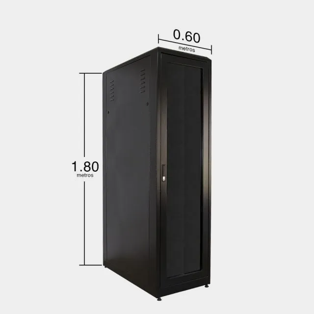 Com portas removíveis e acesso lateral, facilita a manutenção dos equipamentos, enquanto seu sistema de ventilação e gerenciamento de cabos contribui para o bom desempenho dos servidores e demais dispositivos de rede.